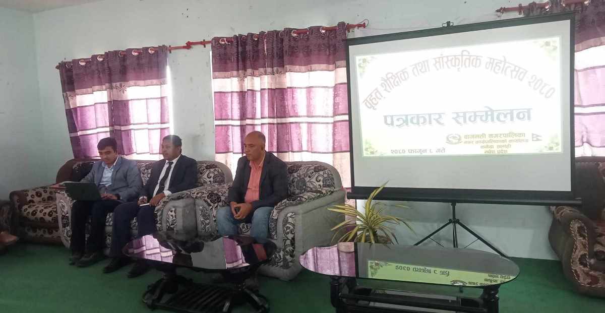 नगरपालिकाले सामुदायिक विद्यालयहरुको शैक्षिक र भौतिक गुणस्तरमा उल्लेख्य सुधार गरेको बागमती नगरपालिकाले फागुन १२ गते शनिबार वृहत शैक्षिक तथा सांस्कृतिक महोत्सव आयोजना गरेको बागमती नगरपालिकाले जनायको छ । “शिक्षा, स्वास्थ्य, रोजगार, त्यसैकालागि पूर्वाधार” भन्ने मूल नारा सहित सामुदायिक विद्यालयहरुको रुपान्तरण अभियान अन्तर्गत बागमती नगरपालिकाले वृहत शैक्षिक तथा सांस्कृतिक महोत्सव आयोजना गर्ने भएको बागमती नगरपालिकाका प्रमुख प्रशासकीय अधिकृत हिरालाल पुरीले बताए ।