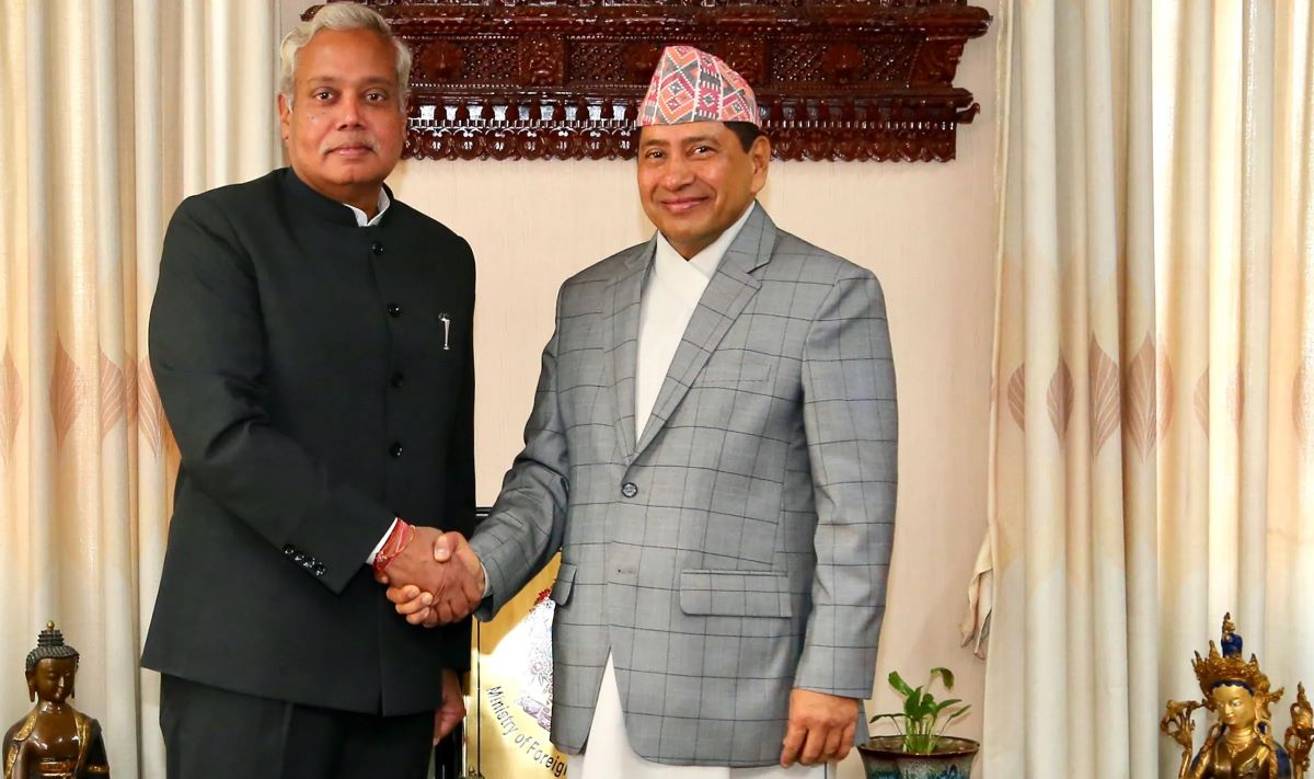 काठमाडौं । नवनियुक्त उपप्रधानमन्त्री एवं परराष्ट्रमन्त्री नारायणकाजी श्रेष्ठसँग नेपालका लागि भारतीय राजदूत नवीन श्रीवास्तवले शिष्टाचार भेटवार्ता गरेका छन् ।