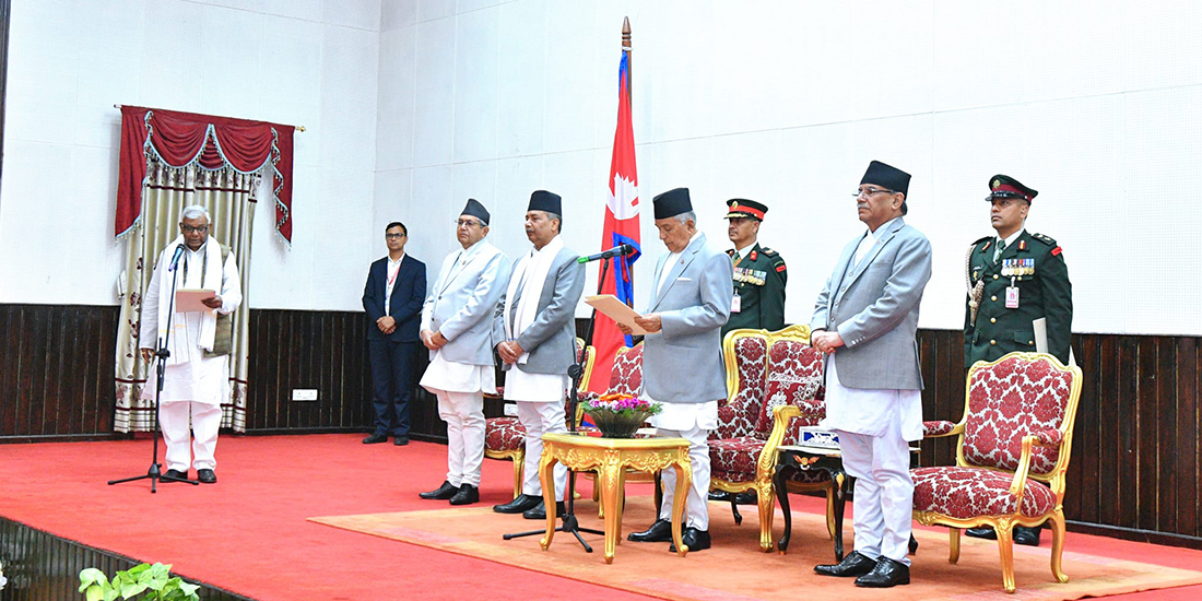 शीतल निवासमा आयोजित विशेष समारोहबीच राष्ट्रपति रामचन्द्र पौडेलले उनीहरूलाई पद तथा गोपनीयताको शपथ गराउनु भएको छ ।