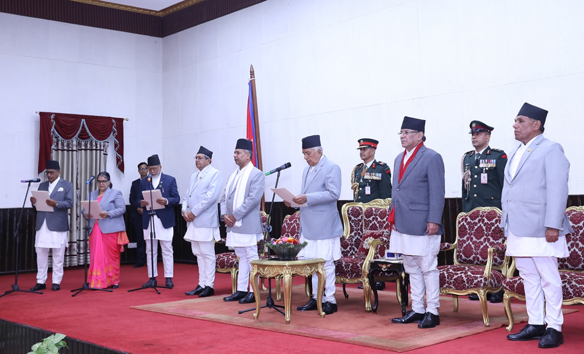 काठमाडौं । राष्ट्रपति रामचन्द्र पौडेलले नवनियुक्त तीन प्रदेश प्रमुखलाई पद तथा गोपनीयताको शपथ गराउनुभएको छ ।