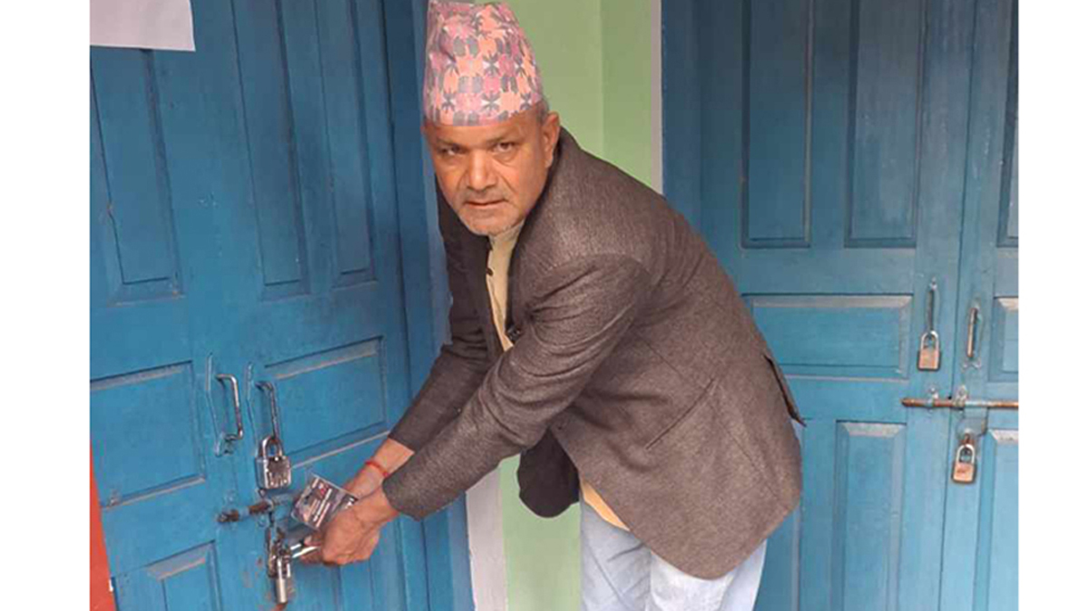 अध्यक्ष मण्डलले आज पदाधिकारीमा सर्वसम्मत घोषणा गर्ने तयारी गरेपछि सचिवमा उम्मेदवारी दिएका कर्णबहादुर चन्दले जिल्ला पार्टी कार्यालयमा तालाबन्दी गरेका हुन् ।