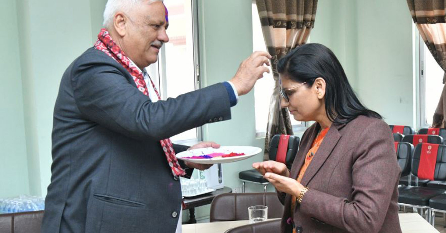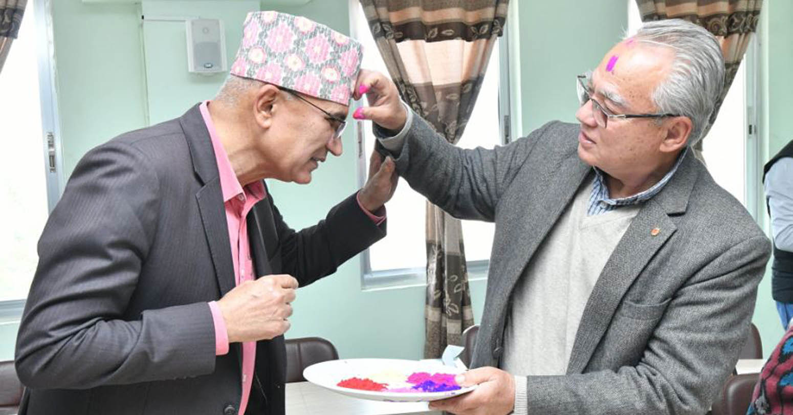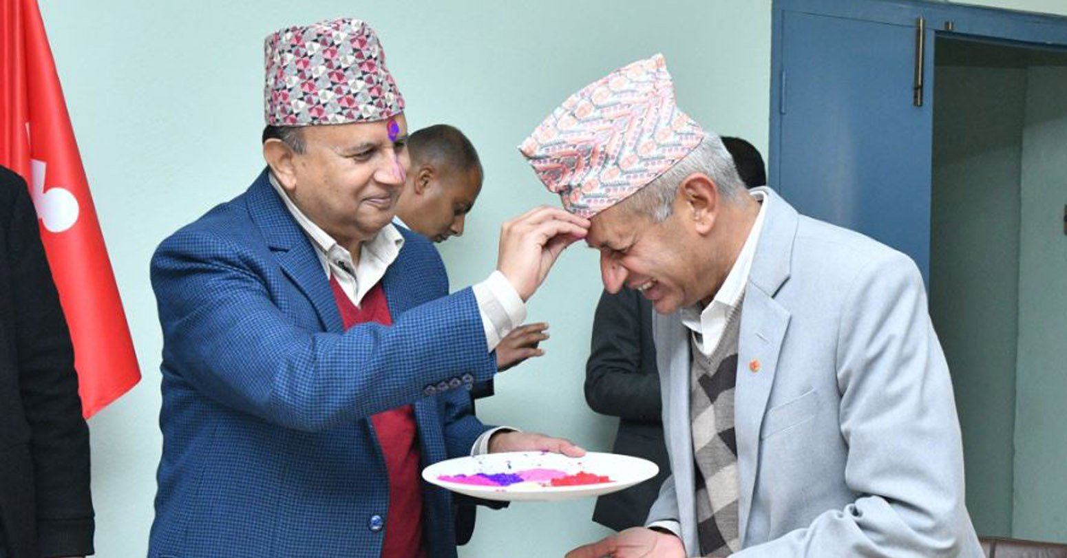 पार्टी मुख्यालय च्यासलमा सचिवालय बैठक बस्नुअघि नेताहरूले एकअर्कामा रङ दलेर होली मनाएका थिए ।