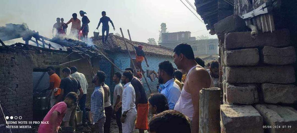 स्थानिय शेख इशहाक मिया धुनियाको खपराको घरमा आगलागी भएर लाखौंको क्षती भएको हो। खाना पकाउने क्रममा आज बिहान ८ बजेर ३० मिनेटमा ग्याँस लिक भएर आगलागी भएको जिल्ला प्रहरी प्रवक्ता डिएस्पी एलिजा गिरीले बताएकी छन्।
