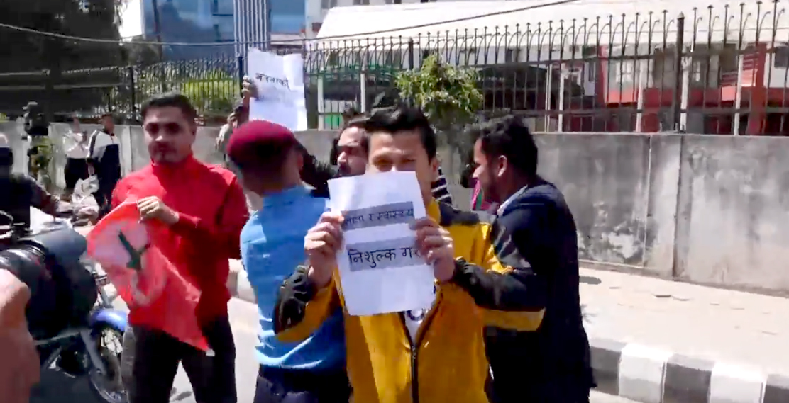काठमाडौं । नेपाल विद्यार्थी संघले सरकारबिरुद्ध सिंहदरबार दक्षिण गेटअगाडि प्रदर्शन गरेको छ ।