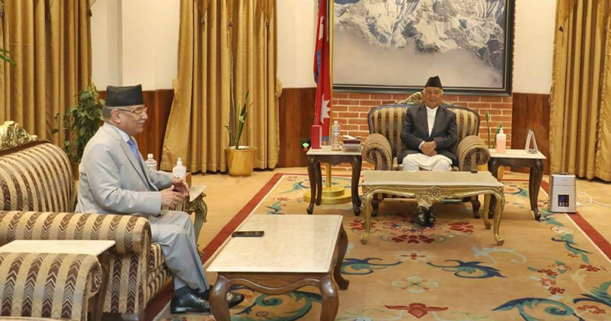 प्रधानमन्त्री प्रचण्डले जेठ १ गते संघीय संसदको संयुक्त बैठकमा सरकारका नीति तथा कार्यक्रम राष्ट्रपति पौडेलले प्रस्तुत गर्ने कार्यक्रमको सन्दर्भमा भेट गरेको बुझिएको छ ।