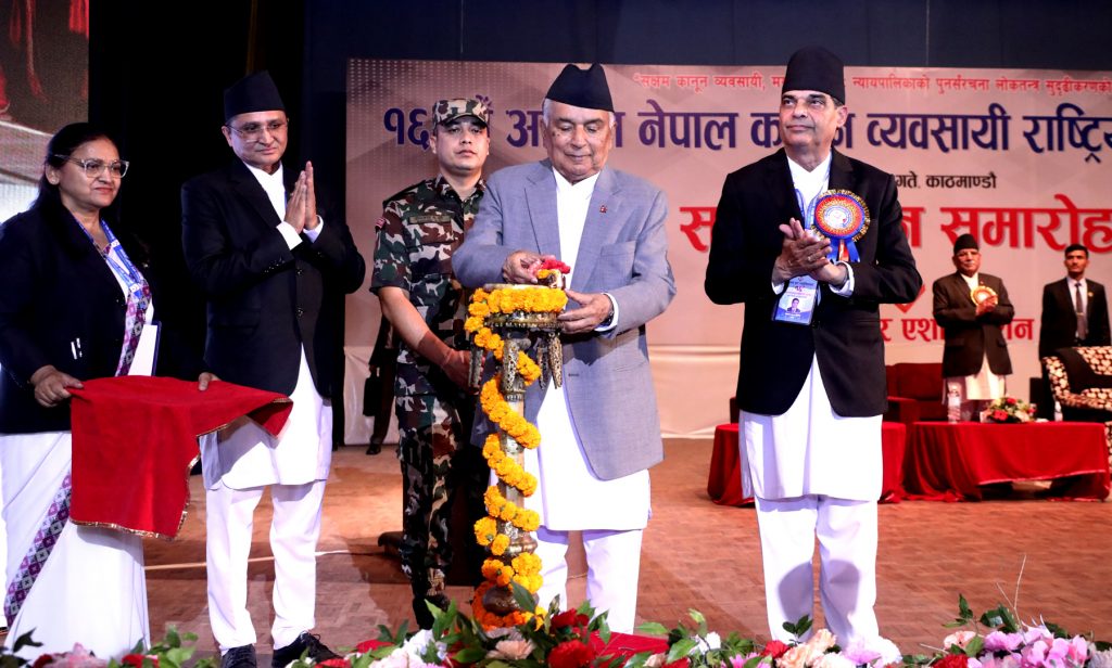 “सक्षम कानुन व्यवसायी, मर्यादित बार : न्यायपालिकाको पुनर्संरचना लोकतन्त्र सुदृढीकरणको आधार” भन्ने नारासाथ नेपाल बार एसोसियसनले आयोजना गरेको १६ औँ अखिल नेपाल कानुन व्यवसायी राष्ट्रिय सम्मेलनको शुक्रबार काठमाडौँमा उद्घाटन गर्दै उहाँले यस्तो बताउनुभएको हो ।