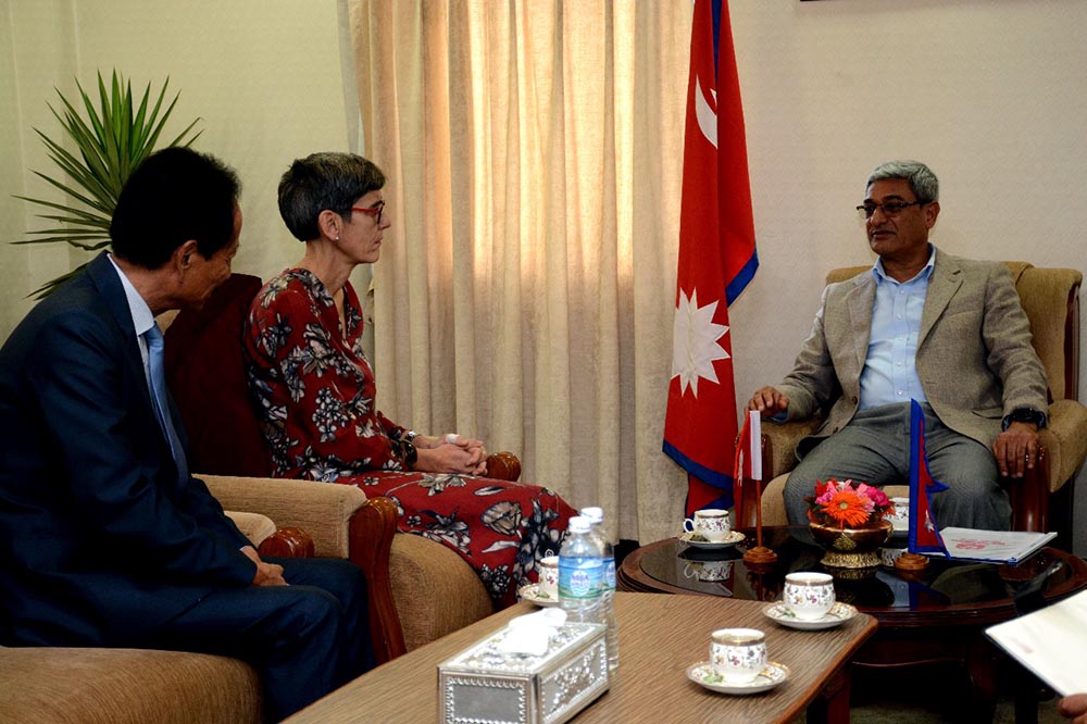 काठमाडौं । गृहमन्त्री रमेश लेखकसँग नेपालका लागि स्विस राजदूत डा. डेनिएल मेउलीले शिष्टाचार भेटघाट गरेकी छन् ।