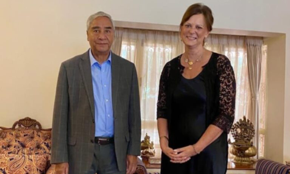 काठमाडौं । नेपालका लागि अष्ट्रेलियाकी राजदूत फेलिसिटी भोल्कले नेपाली कांग्रेसका सभापति तथा पूर्व प्रधानमन्त्री शेरबहादुर देउवासँग विदाई भेटवार्ता गरेकी छिन् ।
