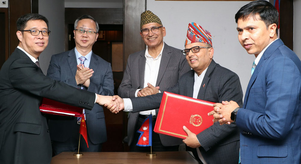 नेपाल सरकारको तर्फबाट अर्थ सचिव डा. घिमिरेले र चीनको तर्फबाट चीन अन्तर्राष्ट्रिय विकास सहयोग निकायका उपाध्यक्ष याङ वेइहुनले हस्ताक्षर गर्नु भयो ।
