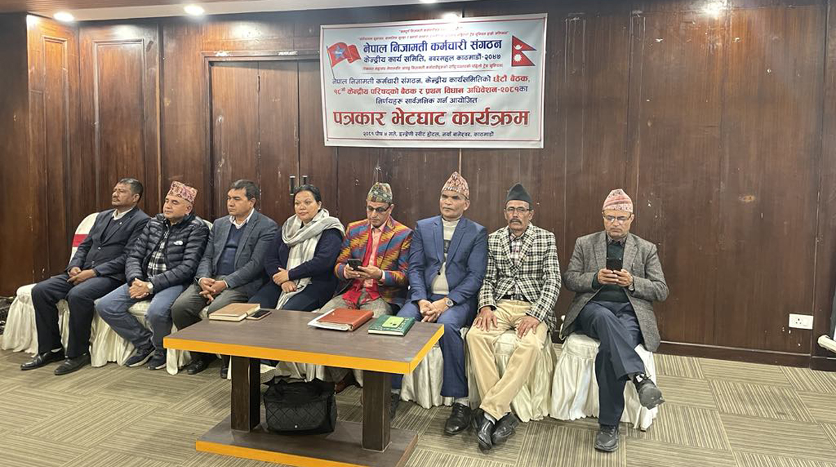 नेपाल निजामती कर्मचारी सङ्गठनले पौष १ र २ गते बसेको केन्द्रीय परिषद् बैठक र प्रथम विधान अधिवेशनबाट भएका निर्णयहरू बारे जानकारी दिन आज पत्रकार भेटघाट कार्यक्रमको आयोजना गरेको थियो ।