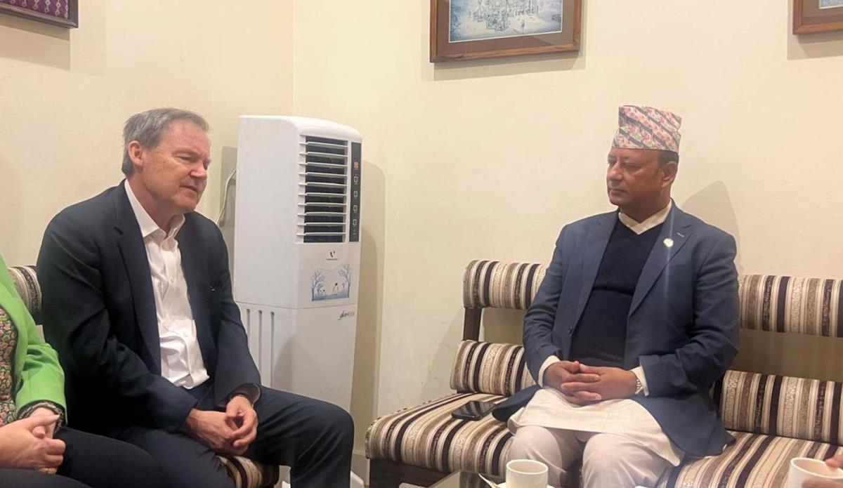काठमाडौँ । ऊर्जा, जलस्रोत तथा सिँचाइमन्त्री दीपक खड्का र नेपालका लागि बेलायतका राजदूत रोब फेनिच शिष्टाचार भेटवार्ता भएको छ।