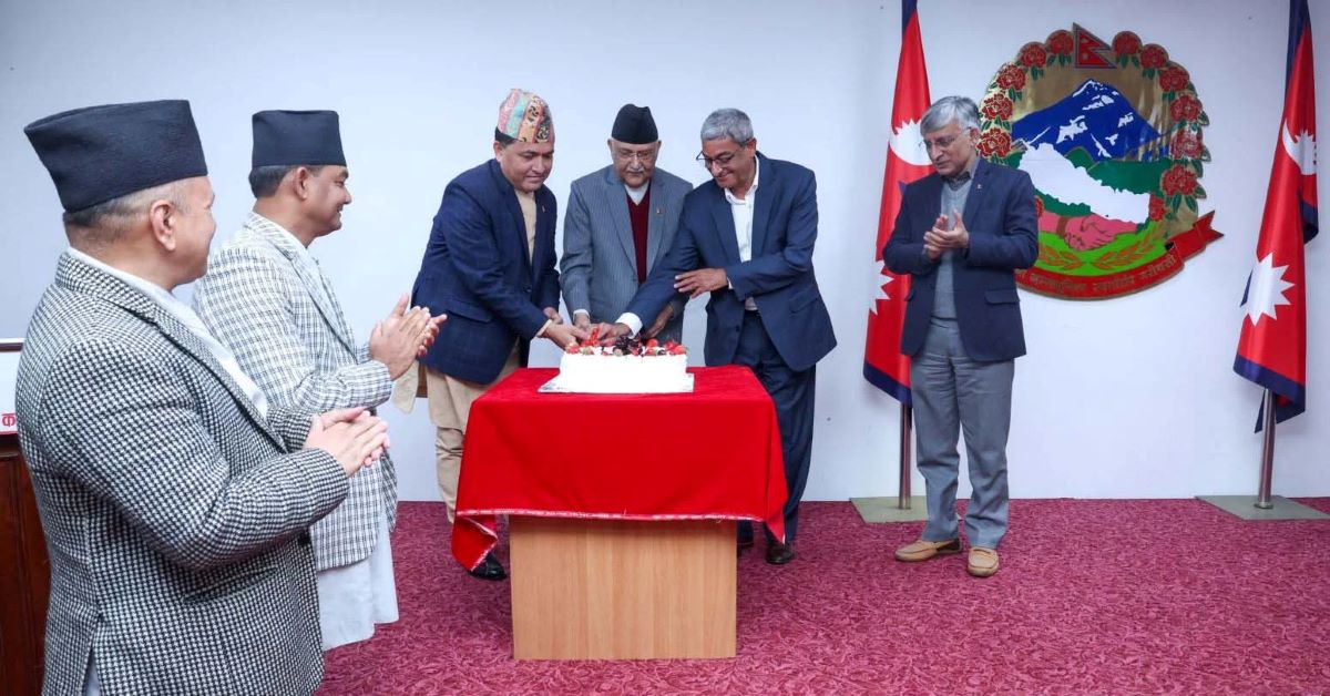 प्रधानमन्त्री ओलीको ७४औँ जन्मदिनका अवसरमा उहाँलाई शुुभकामना दिन आज प्रधानमन्त्री तथा मन्त्रिपरिषद्को कार्यालयले सिंहदरबारमा आयोजना गरेको कार्यक्रममा प्रधानमन्त्री ओलीले आफूलाई गरिएको ‘वर्थ डे विस’ले देशको गरिबी हटाउने तथा सुशासन र समृद्धि कायम गर्ने कामको नेतृत्व गर्नमा सफलता मिलेमा त्यसको सार्थकता हुने बताए ।