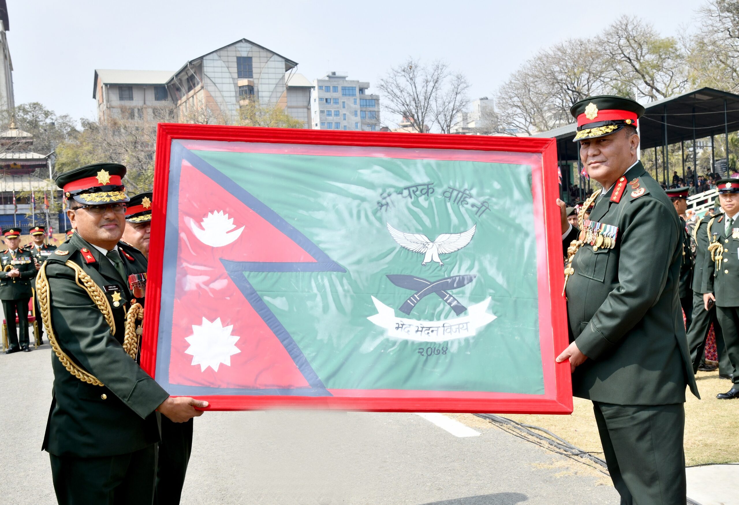 प्रधानसेनापति अशोकराज सिग्देलले उक्त कार्यक्रमको पूर्वाभ्यास निरीक्षण गरेका थिए । कार्यक्रममा उनले श्री चरक बाहिनीलाई युनिट झण्डा प्रदान र केन्द्रीय तहको युद्धकार्य तयारीपन निरीक्षणमा सर्वोत्कृष्ट भएको श्री मध्य पूर्वी पृतनालाई पुरस्कृत गरेका थिए ।
