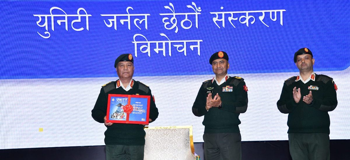नेपाली सेना स्थापनाको २६२औँ वार्षिकोत्सवका अवसरमा नेपाली सेनाद्वारा आयोजित खुला सामरिक लेखरचना प्रतियोगिता–२०८१ मा छानिएका रचनाको सँगालो युनिटी जर्नलको छैटौँ संस्करण विमोचन गरिएको छ । प्रधानसेनापति सिग्देलले सोमबार विमोचन गरेको जर्नलमा राष्ट्रिय, क्षेत्रीय र अन्तर्राष्ट्रिय महत्वका सामरिक विषयमा आधारित उत्कृष्ट लेख रचनाहरूलाई समावेश गरी प्रकाशन गरिएको हो ।
