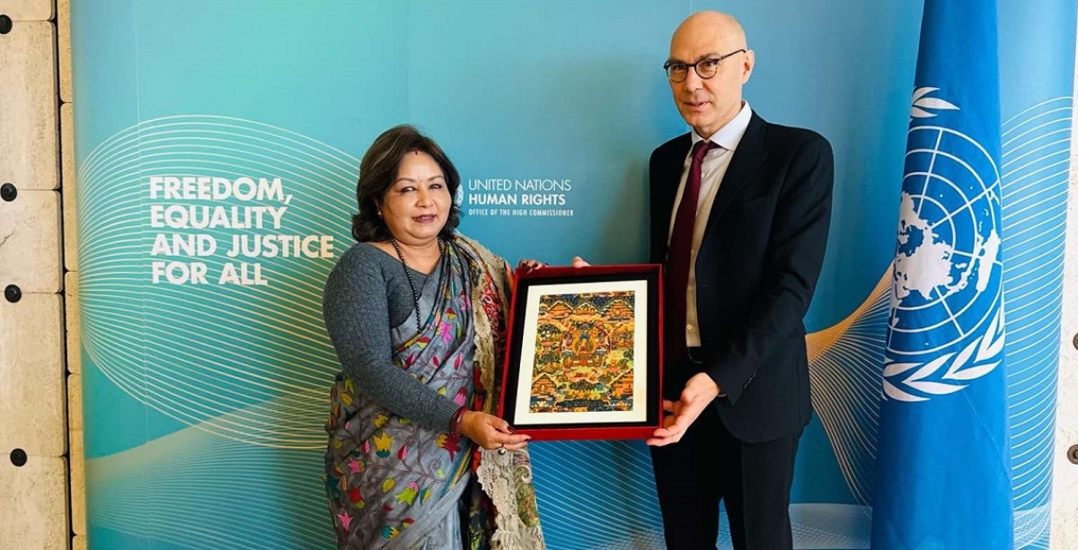 काठमाडौ । परराष्ट्रमन्त्री डा आरजु राणा देउवाले संयुक्त राष्ट्रसङ्घीय मानवअधिकार उच्च आयुक्त भल्कर टकसँग जेनेभामा भेटवार्ता गरेकी छन्। संयुक्त राष्ट्रसङ्घीय मानवअधिकार परिषद्को ५८औँ उच्चस्तरीयसत्रमा सहभागिताका लागि जेनेभामा रहेकी मन्त्री डा देउवाले बुधबार साइडलाइन भेटवार्ता गरेकी हुन्।