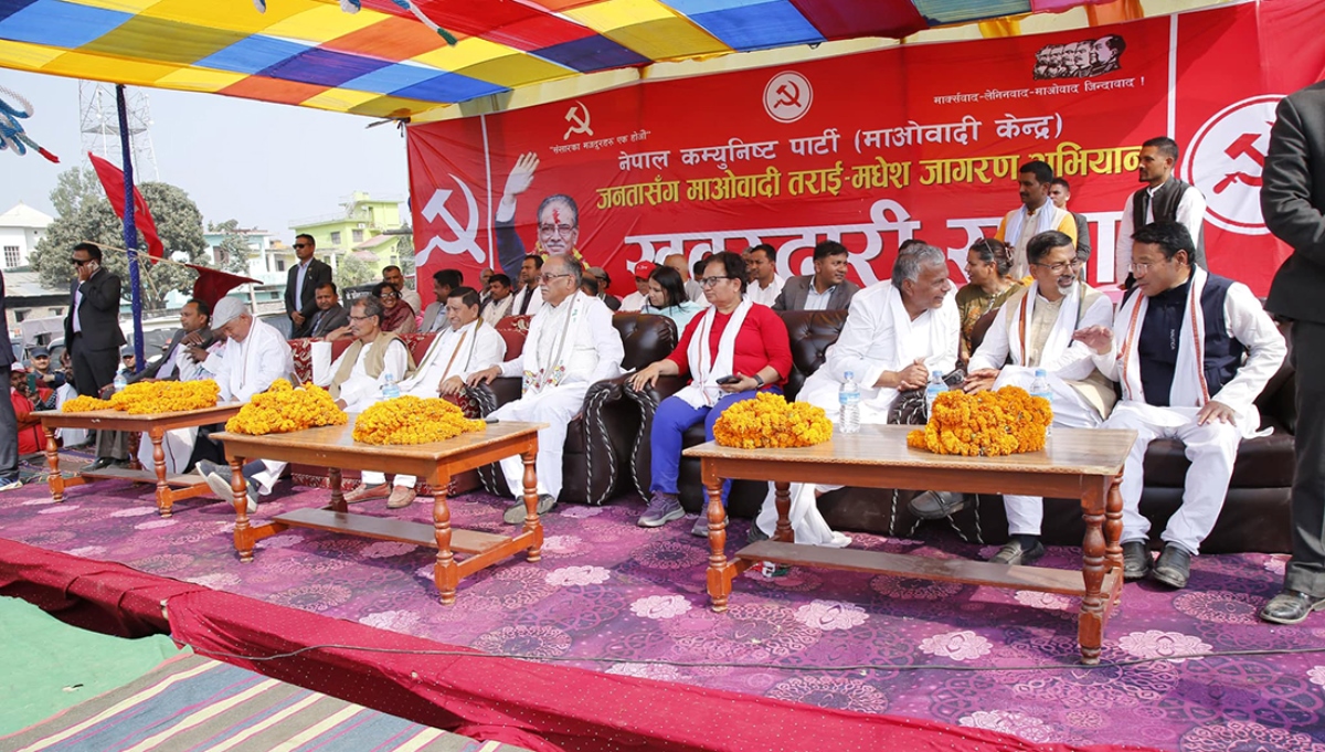 ‘जनतासँग माओवादी तराई/मधेस जनजागरण अभियान’अन्तर्गत शनिबार (फागुन १७) सिरहा सदरमुकाममा आयोजित सभामा उनले दशवर्षे ‘जनयुद्ध’को जग र जनआन्दोलनबाट प्राप्त संविधान उल्टाउने प्रयास सफल हुन नदिइने बताए ।