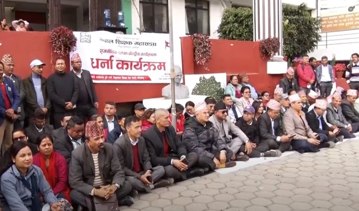 काठमाडौं । नेपाल शिक्षक महासंघले दोस्रो चरणको आन्दोलनका क्रममा कांग्रेस केन्द्रीय कार्यालय सानेपामा धर्ना दिएका छन्। सरकारले यसअघि भएका सहमति कार्यान्वयन नगरेको भन्दै शिक्षकहरूले कांग्रेस पार्टी कार्यालयमा धर्ना दिएका हुन्।