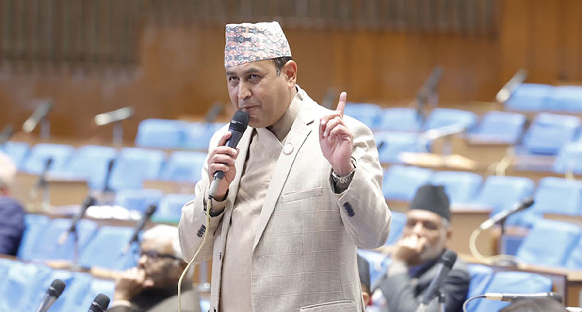 प्रतिनिधिसभाको आजको बैठकमा उनले गत फागुन ६ गते पूर्वराजा ज्ञानेन्द्र शाहले जारी गरेको वक्तव्यमा शाही निशाना प्रयोग गरी श्री ५ महाराजाधिराज भनी उल्लेख गरिएकामा उनले आपत्ति जनाउँदै कारबाहीको माग गरे ।