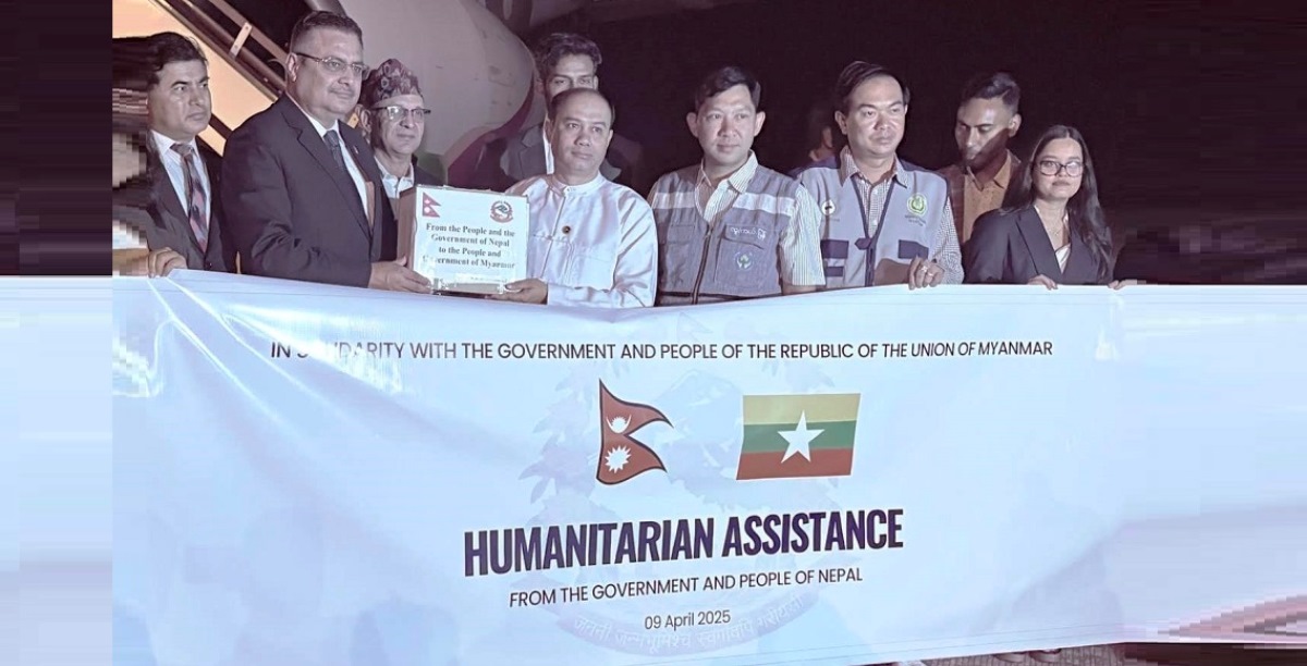 ‘म्यानमारमा भूकम्पले ठूलो क्षति गरेको छ, यस्तो अवस्थामा नेपाल सरकार र निजी क्षेत्रबाट प्राप्त २७ टन बराबर राहत सामग्री यहाँको सरकारलाई उपलब्ध गराइएको हो’, सहसचिव अधिकारीले भने, ‘नेपाल सरकारले आगामी दिनमा पनि सहयोगलाई निरन्तरता दिनेछ, यसप्रकारको सहयोग आदानप्रदानले दुई देशबीचको मित्रता अझ प्रगाढ बन्नेछ।’
