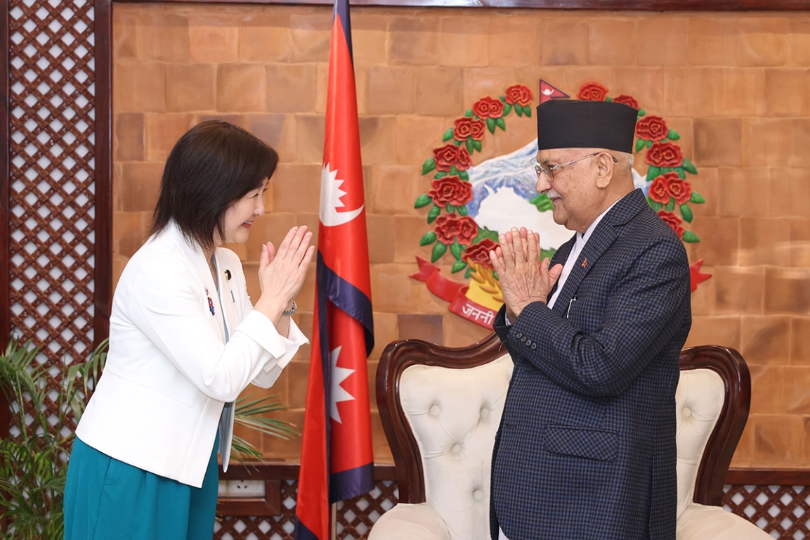 काठमाडौं । प्रधानमन्त्री केपी शर्मा ओलीसँग सगरमाथा संवादमा सहभागी हुने सिलसिलामा काठमाडौंमा रहेका जापानका उपपरराष्ट्रमन्त्री इक्युुना आकिकोले शनिबार (जेठ ३) शिष्टाचार भेट गरेका छन् ।