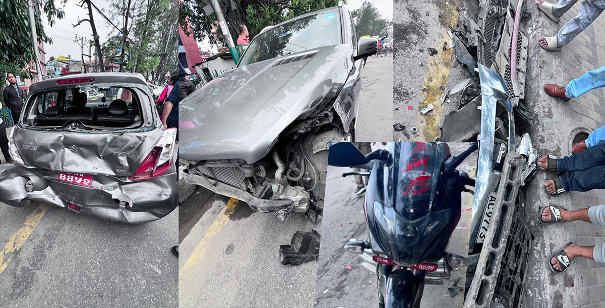 अनियन्त्रित बसका चालक फरार रहेको प्रहरीले जनाएको छ । बसले बा ५ ख ७३१ नम्बरको माइक्रोबस, बा.प्र.०१–०२६ च ८५७६ नम्बरको कार, बी एसी ९७७३ नम्बरको कार, बा १६ च ४४५२ नम्बरको कार, प्र–२–०१–००३ प १००५ नम्बरको मोटरसाइकल, बा ५१ प २२ नम्बरको मोटर साइकल, बा.प्र.०२–०४६ प ४८१९ नम्बरको स्कुटरलाई ठक्कर दिएको हो ।