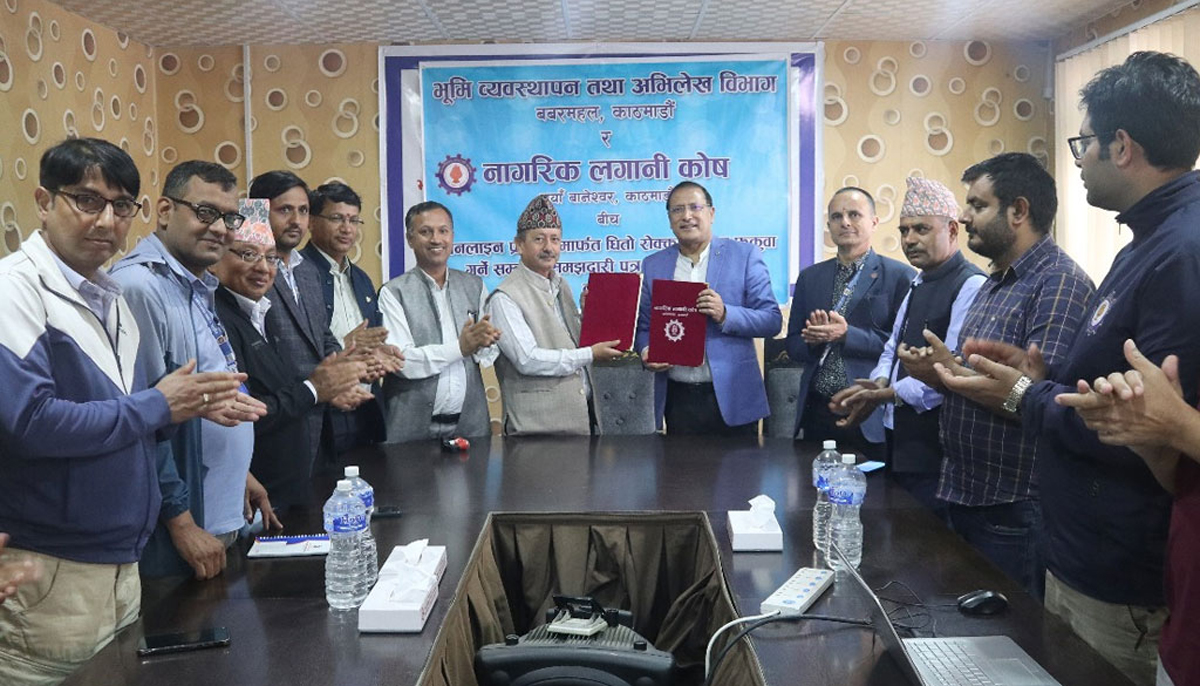 काठमाडौँ । नागरिक लगानी कोष र भूमि व्यवस्थापन तथा अभिलेख विभागबीच अनलाइन प्रणालीमार्फत धितो रोक्का र फुकुवा गर्ने सम्बन्धमा सम्झौता भएको छ ।