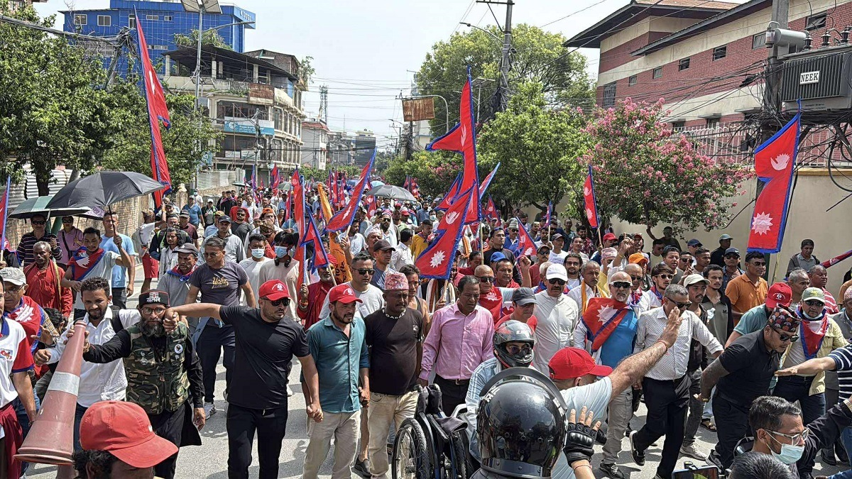 काठमाडौं । राजावादीले जेठ १५ गते घोषणा गरेको जनान्दोलनको शनिबार तेस्रो दिन नारायणहिटीमा निषेधित क्षेत्र तोकिएपछि शान्तिवाटिकामा भेला भएर प्रधानमन्त्री निवास बालुवाटारतर्फ अघि बढेको छ।