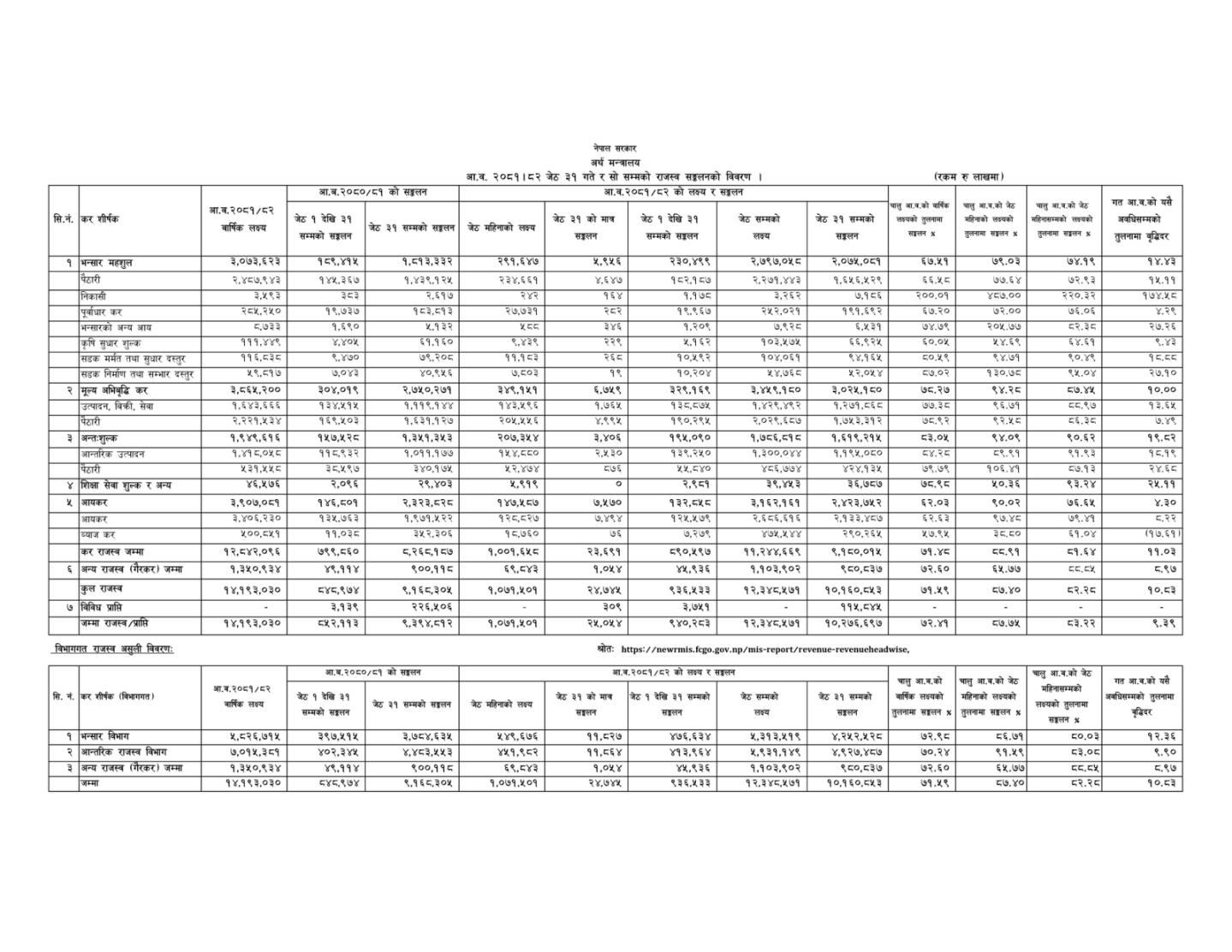 अर्थ मन्त्रालयका अनुसार २०८२ साल असार ३१ गतेसम्म संकलित राजस्व गत वर्षको सोही अवधिको भन्दा ८८ अर्ब रुपैयाँ बढी हो ।