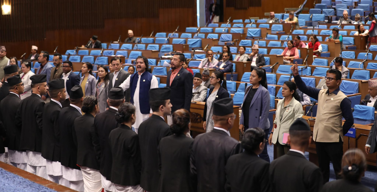 सभामुख देवराज घिमिरेले बैठक सुरु भएको घोषणा गरेलगत्तै रास्वपा र राप्रपाका सांसदहरूले विरोध जनाउँदै उठेका थिए। त्यसक्रममा सभामुखले रास्वपाका सांसद हरि ढकाललाई बोल्ने अवसर दिए ।