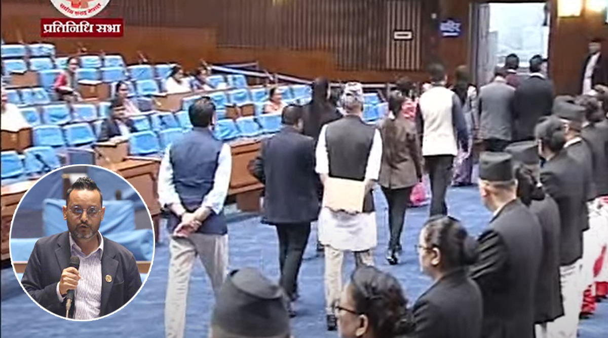 प्रतिपक्षी सांसदहरूलाई सुनिरहेको रास्वपा, नेपाली कांग्रेस र एमालेका सांसदहरूको पालो आउँदा बैठक छाडेर बाहिरिएको हो ।
