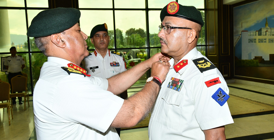 काठमाडौँ । नेपाली सेनामा उपरथीमा बढुवा भएका गौरव कुमार केसीलाई औपचारिक रूपमा दर्ज्यानी चिन्ह प्रदान गरिएको छ ।
