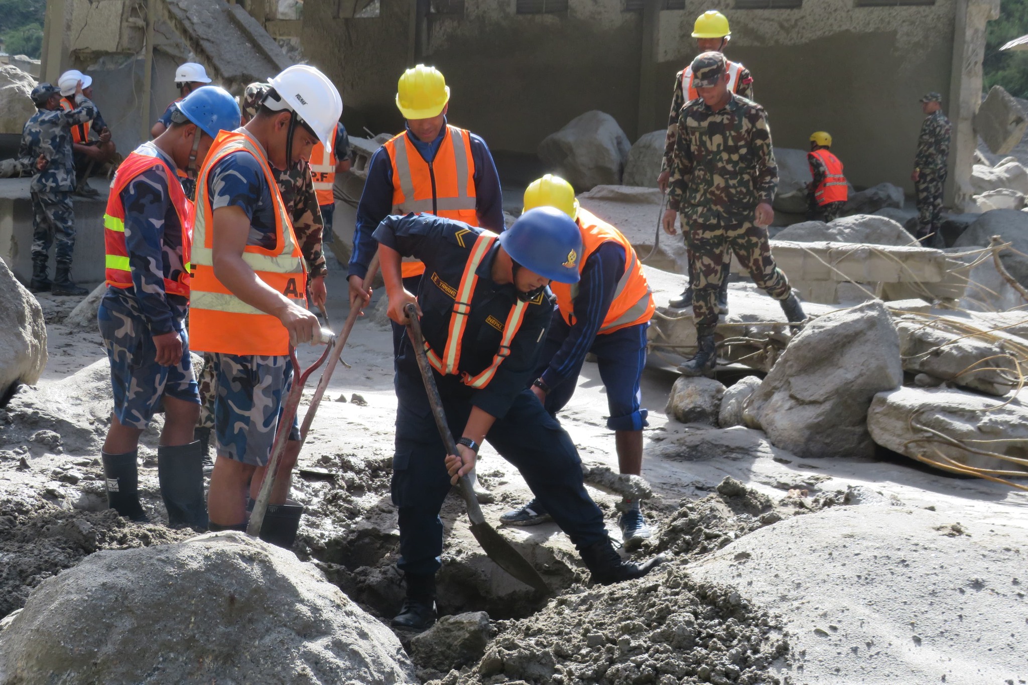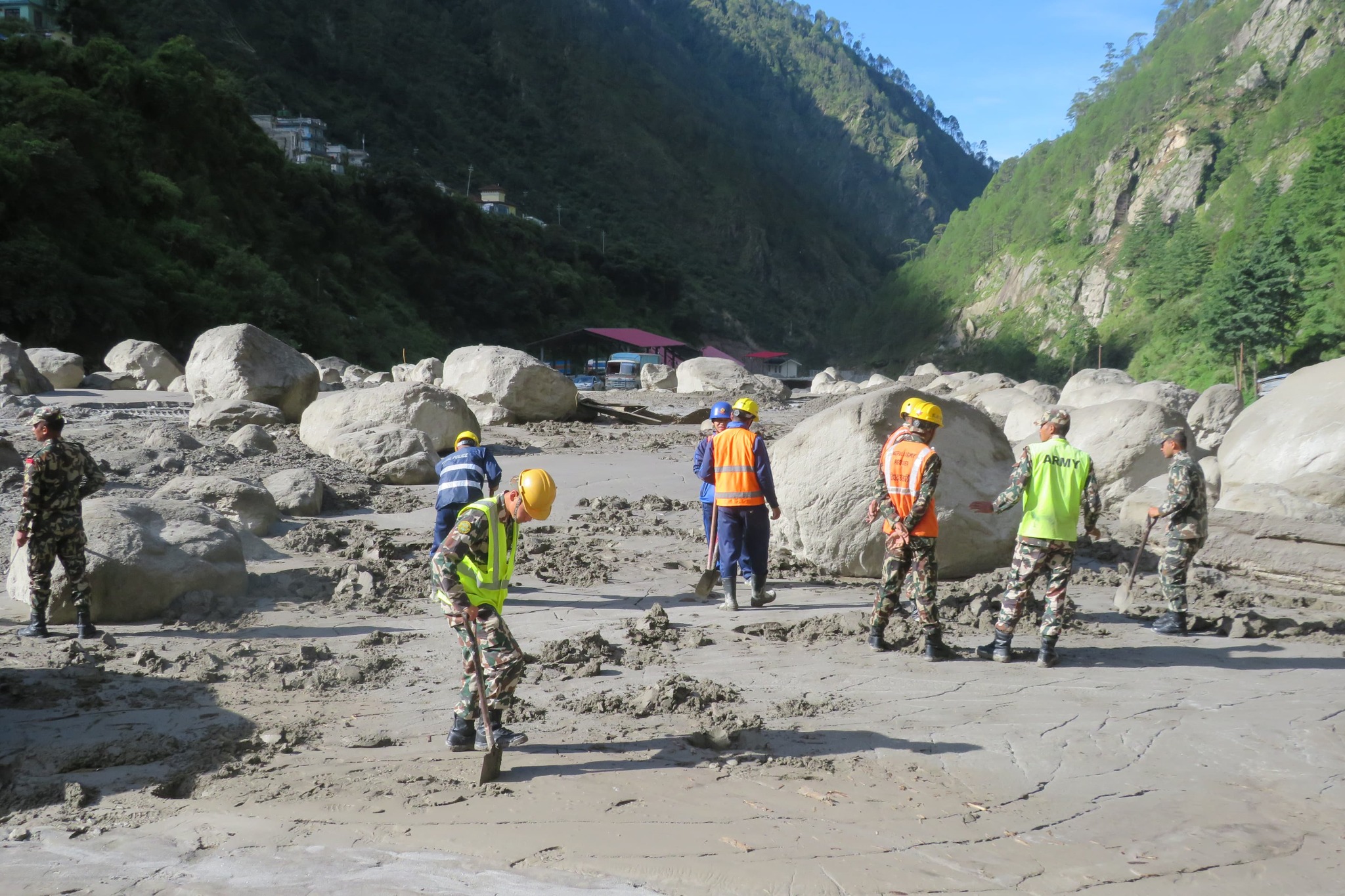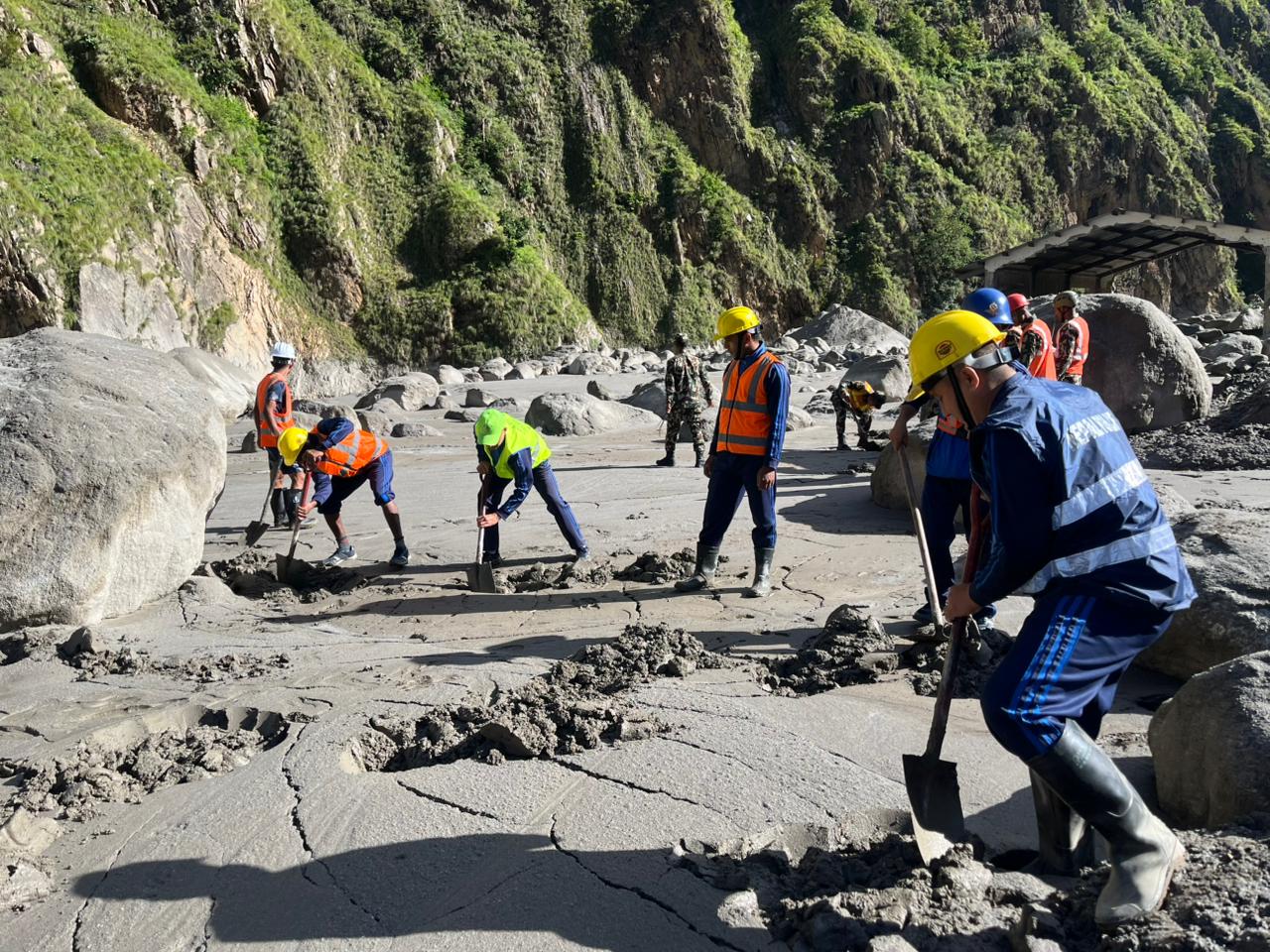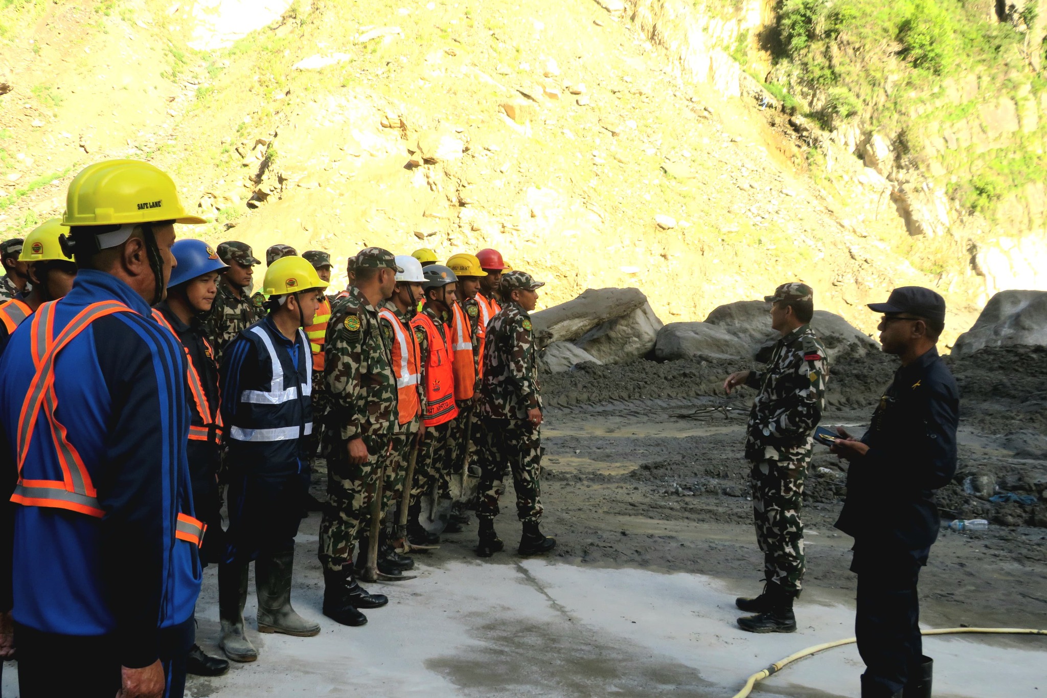 रसुवा जिल्लाको लिङ्दे खोलामा मिति २०८२/०३/२४ गते आएको बाढीका कारण हराएका व्यक्तिहरूको खोज तथा उद्धार कार्यमा नेपाल प्रहरी, नेपाली सेना तथा अन्य सुरक्षा निकाय ।