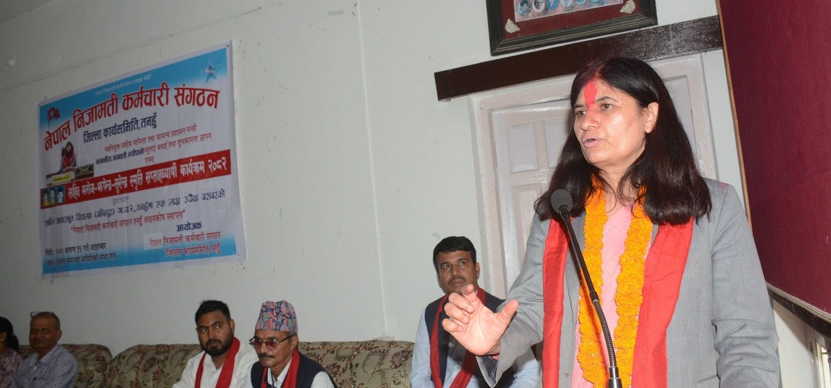 तनहुँ । सङ्घीय मामिला तथा सामान्य प्रशासनमन्त्री भगवती न्यौपानेले निजामती कर्मचारी ऐन संसद्को चालु अधिवेशनबाटै पारित हुने बताएकी छिन्।