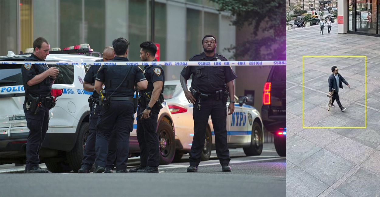 प्रहरीका अनुसार ती युवक लास भेगासका थिए। सार्वजनिक गरिएको सीसीटीभी फुटेजमा उनी लामो बन्दुक बोकेर भवनभित्र पस्दै गरेको देखिएका छन्। प्रत्यक्षदर्शीहरूका अनुसार, ती व्यक्ति भवनको लबीमा पुगेर अन्धाधुन्ध गोली चलाउन सुरु गरेका थिए। उनले सुरुमा एक न्यूयोर्क पुलिसका अधिकारीलाई गोली हानेका थिए भने त्यसपछि एक महिलालाई पनि निशाना बनाएका थिए जो एउटा खम्बा पछाडि लुकेकी थिइन्।