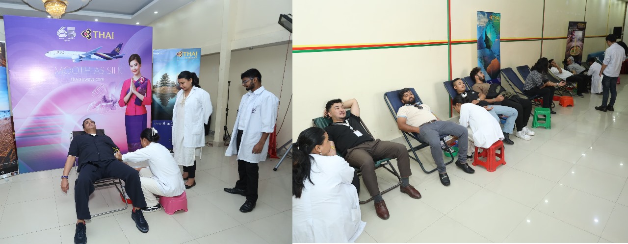 काठमाडौं, साउन १६ । थाई एयरवेजका तर्फबाट सो एयरलाइन्सको जि.एस.ए. सोसाईटी ईन्टरनेशनल ट्राभल्सद्वारा आयोजित रक्तदान कार्यक्रम सफलतापूर्वक सम्पन्न भएको छ । “जीवनको उपहार दिऔं” भन्ने मुल नारासहित काठमाडौंको हात्तीसारमा बिहीबार कार्यक्रम आयोजना गरिएको थियो ।