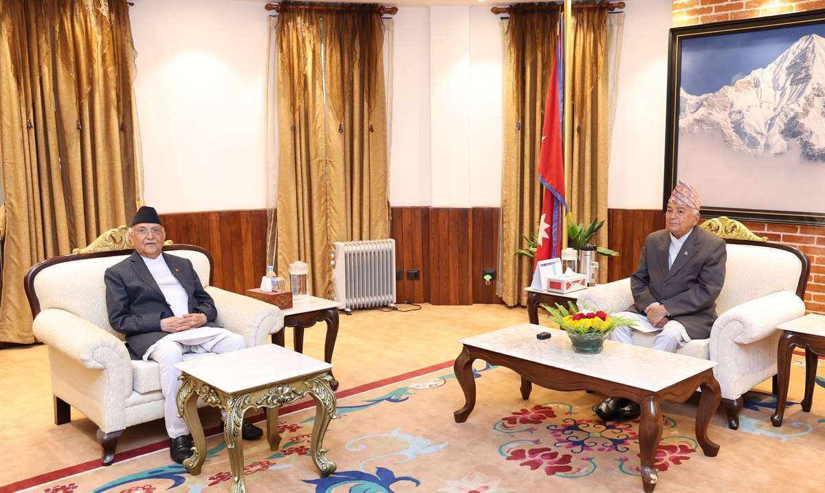 काठमाडौँ । प्रधानमन्त्री केपी शर्मा ओलीले राष्ट्रपति रामचन्द्र पौडेलसँग भेटवार्ता गरेका छन्। शनिबार शीतल निवास पुगेर उनले राष्ट्रपति पौडेलसँग भेटवार्ता गरेका हुन्।
