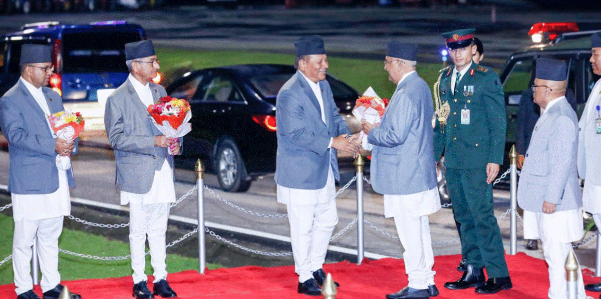 त्रिभुवन अन्तरराष्ट्रिय विमानस्थलको अति विशिष्ट कक्षमा उपप्रधानमन्त्री एवम् सहरी विकासमन्त्री प्रकाशमान सिंह, गृहमन्त्री रमेश लेखक, संस्कृति, पर्यटन तथा नागरिक उड्डयनमन्त्री बद्रीप्रसाद पाण्डेले प्रधानमन्त्रीलाई स्वागत गरे ।