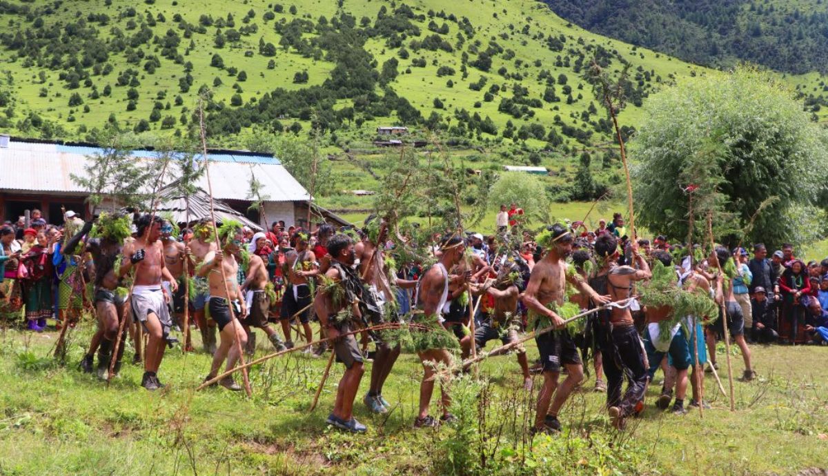 ढोरपाटन (बागलुङ) । अर्ध नग्न शरीर, मोसोले छोपिएको अनुहार र छाति, कम्मरमा सेतो कपडा बाँधेर हातमा धुपीको हाँगो समातेर केही युवा दौडिँदै थिए । ती युवाका पछि ढ्याङ्ग्रो ठट्याउँदै आइरहेका थिए, झाँक्रीहरु । माथिदेखि दौडिँदै आएको झाँक्री र एक हुल युवाको दृश्य अनौठो थियो । यो अवसरको साक्षी बन्न निसेलढोरमा सयौँ मानिस जम्मा भएका थिए ।