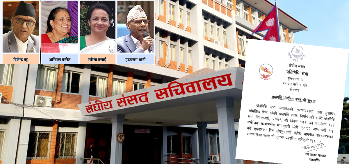संसद सचिवालयद्वारा जारी सूचनाअनुसार सभामुख देवराज घिमिरेले यही भदौ ११ गते (बुधबार) निर्वाचन मिति तोकेको जनाइएको छ।