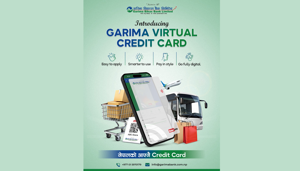 काठमाडौं । गरिमा विकास बैंक लिमिटेडले फोनपे नेटवर्कसँगको सहकार्यमा आफ्नो मोबाईल बैकिङ् एप “गरिमा डिजि बटुवा” बाट नेपालको आफ्नै भर्चुअल क्रेडिट कार्ड सेवाको सुरुवात गरेको छ ।