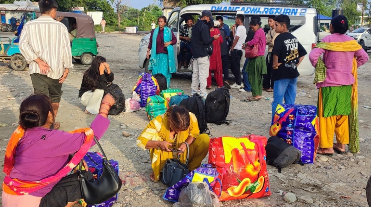 परिवारसहित काम खोज्दै भारतको हिमाञ्चल प्रदेश जान लागेका डोटीको जोरायल गाउँपालिका-२ का करन थापा मङ्गलबार गड्डाचौकी नाकामा भेटिए। ‘साँझ–बिहान छाक टार्न समस्या छ, पैसा नभई कसरी दशैँ हुन्छ’, उनले भने, ‘पैसा भयो भने तिहार मनाउन आउँछु। यो पटक घरमा बसेर दशैँ मनाउन पाइएन।’ थापाले दशैँको समयमा बालबच्चाको विद्यालय बिदा भएका कारण परिवारका सबैजना काम खोज्दै हिमाञ्चलन प्रदेश जान लागेको बताए।