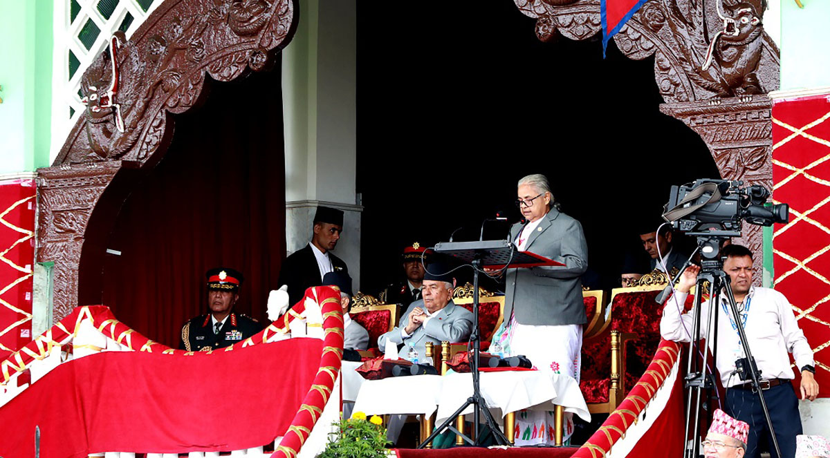 ‘पछिल्लो आन्दोलनले हामीलाई धेरै क्षेत्रमा सुधार गर्न मार्गनिर्देश गरेको छ। युवापुस्ता आफू शासकीय प्रणालीमा सहभागी हुन चाहन्छ। विकसित देशका सफल शासकीय अभ्यासलाई आफ्नो मुलुकमा देख्न चाहन्छ। नीतिगत तहमा आफ्ना विचार प्रतिविम्बित भएको हेर्न चाहन्छ’, उनले भनिन्, ‘यसर्थ, संविधान दिवसको यस अवसरमा म यो सरकारले युवा, महिला, बालबालिका, फरक क्षमता भएका व्यक्ति, दलित, आदिवासी जनजाति, मधेसी, थारू, पछाडि परेको वर्ग, समुदाय र सबै पुस्ताको भावना र अपेक्षालाई सम्बोधन गर्न दृढ सङ्कल्पका साथ निरन्तर काम गर्दै जाने विश्वास दिलाउन चाहन्छु।’