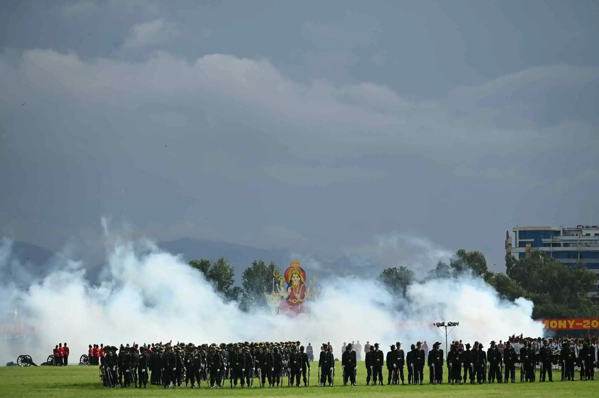 उक्त समारोहमा सेनाको टोलीले शङ्खघोषसहित राइफलबाट लहरे र एकट्ठा तथा तोपबाट पनि बढाइँ गरेको छ । समारोहमा सैनिक परेड प्रदर्शन, दुर्गा नाचका साथै सेनाको हेलिकप्टर र ड्रोनबाट ‘फूलपाती बढाइँ समारोह–२०८२’ ब्यानर प्रदर्शन र पुष्पवृष्टि गरिएको थियो । सो अवसरमा दुर्गा बन्दना प्रस्तुत गरिएको थियो ।