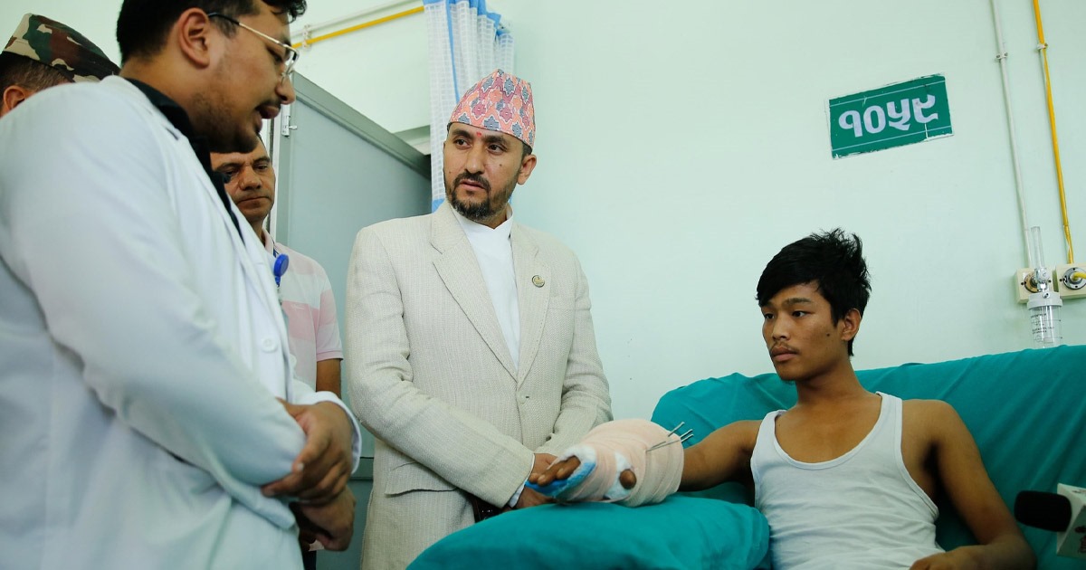 सिभिल अस्पतालमा एकजना, राष्ट्रिय ट्रमा सेन्टरमा १० जना, काठमाडौं मेडिकल कलेज शिक्षण अस्पतालमा तीनजना, त्रिवि शिक्षण अस्पतालमा पाँचजना, पाटन स्वास्थ्य विज्ञान प्रतिष्ठानमा तीनजना, नेपाल प्रहरी अस्पतालमा एकजना र कीर्तिपुर अस्पतालमा एकजना उपचाररत छन् ।