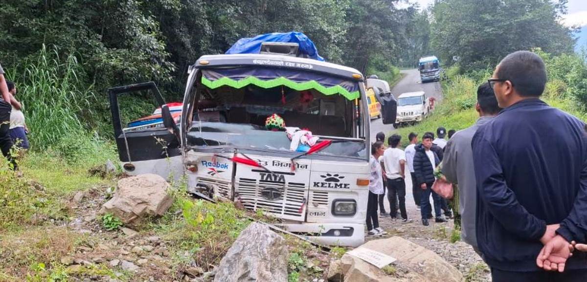 रामेछापबाट चरिकोट हुँदै काठमाडौँतर्फ जाँदै गरेको बा प्र ०३–००१ ख २५२१ नम्बरको बस अनियन्त्रित भई सडकको भित्तामा ठोक्किएर मंगलबार साँझ दुर्घटना भएको प्रहरीले जनाएको छ।