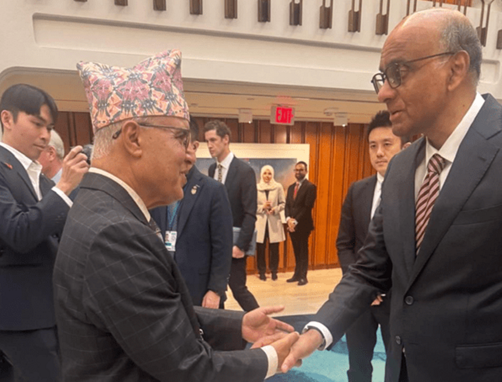 वासिङ्टन डीसी । अर्थमन्त्री रामेश्वरप्रसाद खनालले सिङ्गापुरका राष्ट्रपति थरमन शानमुगार्थमसँग भेटवार्ता गरेका छन् । विश्व बैंक समूहको वार्षिक बैठकमा भाग लिन अमेरिका आएका खनालले ‘साइडलाइन’ बैठकमा राष्ट्रपति थरमनसँग भेट गरेका हुन्। भेटको अवसरमा मन्त्री खनालले नेपालमा भएको राजनीतिक विकासक्रम र आर्थिक प्राथमिकताको विषयमा छलफल भएको बताए ।