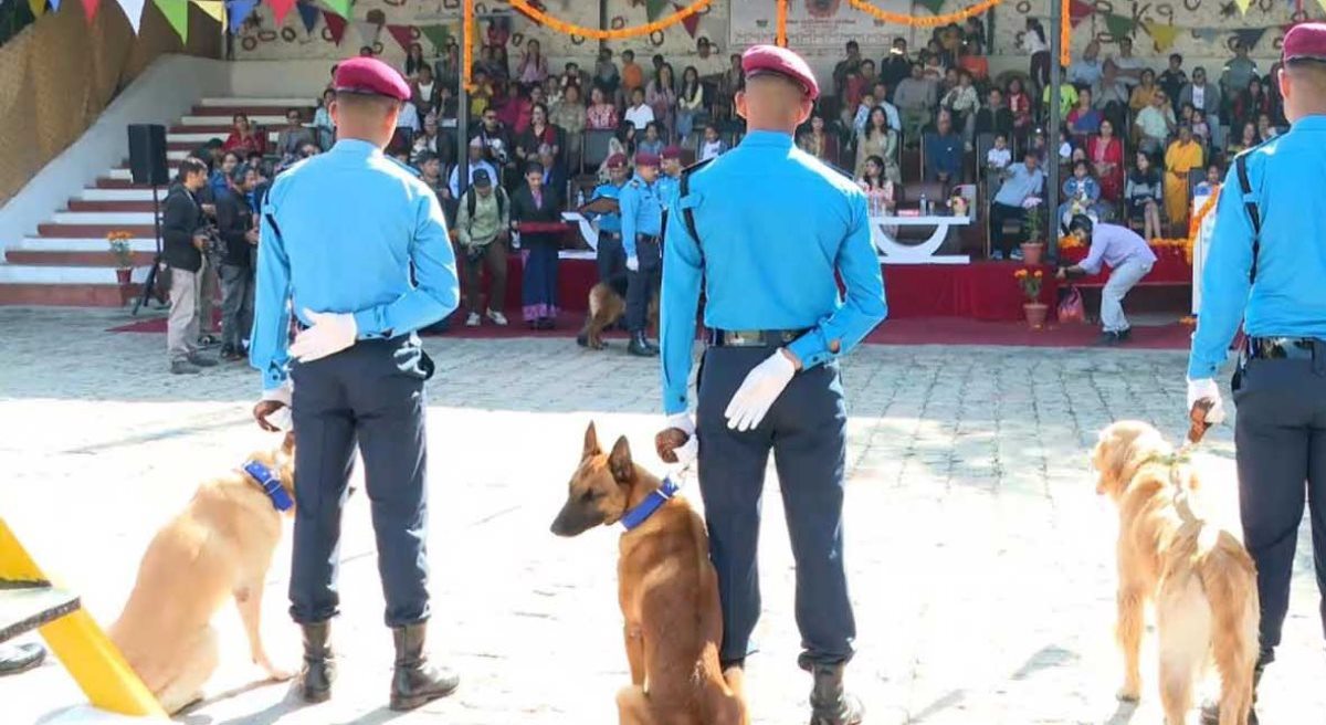 काठमाडौं । नेपाल प्रहरीले सेवा कुकुरसहित कुकुर तिहार पर्व मनाएको छ । यस अवसरमा कुकुरहरूलाई माला, टीका र विशेष भोजन अर्पण गरेर पूजा गरिन्छ ।