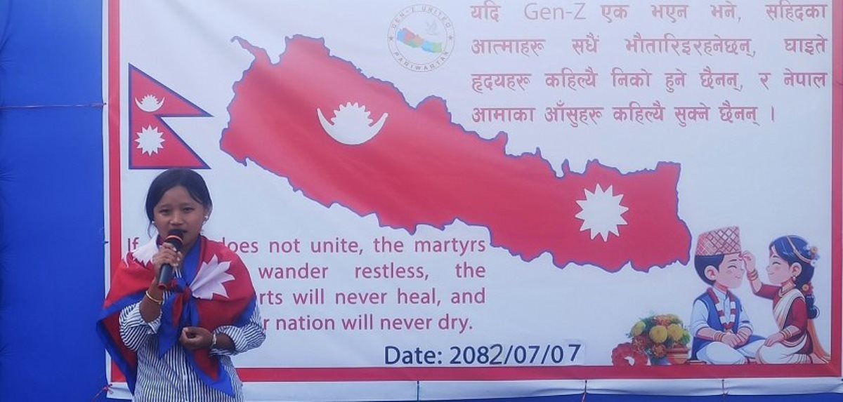 ‘जेनजी युवा सडकमा विजयी र वार्तामा पराजित भए पनि अब एकताबद्ध भएर सङ्घर्ष गर्नुपर्छ’, उनले भने– ‘जात, भाषा, पार्टी बिर्सेर सम्पूर्ण जेनजी एकताबद्ध हुनुपर्छ, अहिले हाम्रो राष्ट्र भन्दा ठूलो केही छैन ।’