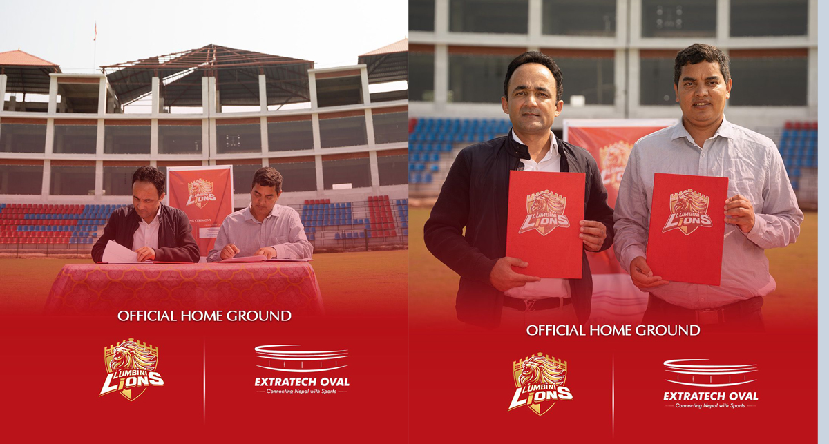 भैरहवा । लुम्बिनी लायन्स र भैरहवास्थित एक्स्ट्राटेक ओभल क्रिकेट मैदानबीच दीर्घकालीन साझेदारी सम्झौता भएको छ । उक्त सम्झौता पत्रमा एक्स्ट्राटेक ओभलका तर्फबाट बिनोद कुँवर र लुम्बिनी लायन्सका तर्फबाट अध्यक्ष ईश्वर जिसीले हस्ताक्षर गरेका छन् ।