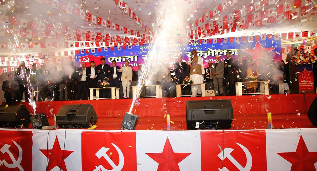 काठमाडौँ । नेपाली कम्युनिस्ट पार्टीको एकता राष्ट्रिय सम्मेलन जारी छ । नेकपा (माओवादी केन्द्र), नेकपा एकीकृत समाजवादीसहितका विभिन्न १० वटा कम्युनिस्ट घटकहरूबीच एकता घोषणा सम्मेलन काठमाडौँको भृकुटीमण्डपमा जार छ । सवै घटकहरुको एकतापछिको नाम नेपाली कम्युनिस्ट पार्टी रहने भएको छ ।